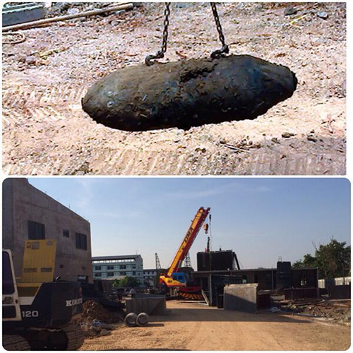ด้านเจ้าหน้าที่อีโอดีได้เข้าตรวจสอบพื้นที่ พบว่าวัตถุระเบิดที่คนงานก่อสร้างนำมาขายนั้นเป็นระเบิดชนิดอากาศ หนักประมาณ 500 ปอนด์ รัศมีทำลายล้างกว่า 500 เมตร ซึ่งใช้ในสมัยสงครามโลกครั้่งที่ 2