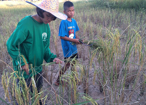 2 พี่น้องงดเรียนไปเกี่ยวข้าว หาเงินรักษาพ่อ