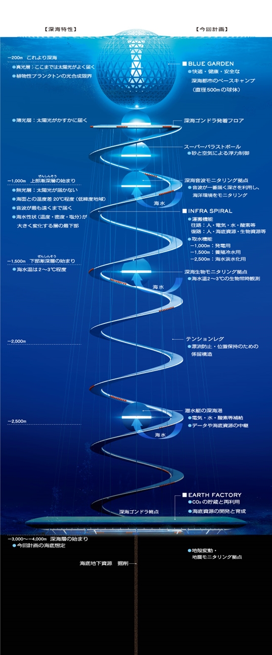 ด้วยความที่ญี่ปุ่นเป็นประเทศซึ่งเป็นเกาะ ทำให้มีพื้นที่ผืนดินสำหรับอาศัยอยู่อย่างจำกัด นักวิจัยเลยจึงพยายามหาทางออกที่แสนบรรเจิดด้วยการผุดโปรเจทค์ใหญ่มูลค่า 3 ล้านล้านเยน สร้างเมืองขึ้นใต้ทะเล โอเชียน สไปรัล (Ocean Spiral) ก็พื้นที่ใต้น้ำมีอยู่ออกมหาศาล ถ้าทำได้สำเร็จก็ไม่ต้องหวั่นเรื่องไร้ที่อยู่อาศัยอีกแล้ว ไอเดียอย่างเจ๋งเลย
