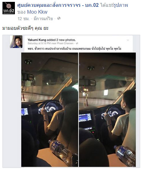 และล่าสุด (2 กุมภาพันธ์ 2558) ทางเฟซบุ๊ก ศูนย์ควบคุมและสั่งการจราจร - บก.02 ก็ได้โพสต์ภาพดังกล่าว พร้อมระบุว่า.. มามอบตัวซะดี ๆ คุณยะ งานนี้ชาวเน็ตวิพากษ์วิจารณ์กันยกใหญ่ ทั้งด่าทอต่อว่า ระบุว่าถ้าจะหัดลูกขับรถก็ควรไปหัดที่กว้าง ๆ โล่ง ๆ ไม่ใช่มาหัดบนถนนใหญ่เช่นนี้ และเด็กคนนี้ก็อายุไม่ถึง ไม่ควรปล่อยให้ขับรถ ถึงแม้จะมีผู้ใหญ่อยู่ด้วยก็ตาม แต่ก็ไม่ควรทำเพราะผิดกฎหมาย