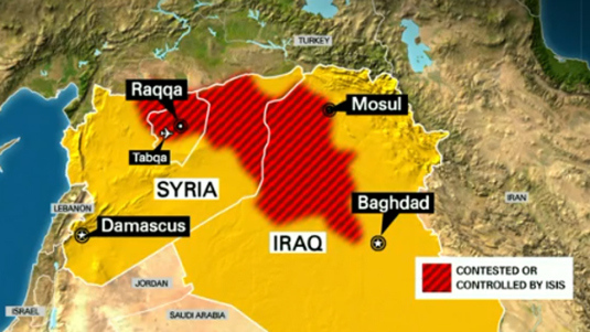 เหตุใดซีเรียจึงตกเป็นเป้ายึดครองของกลุ่ม ?ดังที่ได้กล่าวไปแล้วว่าเดิมทีกลุ่มไอซิสยังเป็นเพียง ISI ที่หมายจัดตั้งรัฐอิสลามขึ้นในอิรักเท่านั้น แต่ในเวลาต่อมาก็ได้พบว่าซีเรียสามารถเป็นฐานที่ตั้งที่ดีของกลุ่มได้ หน่วยงานต่อต้านก่อการร้ายของสหรัฐฯ เคยได้วิเคราะห์ไว้ว่า กลุ่มนักรบอิสลามได้พบว่าทั้งอิรักและซีเรียสามารถเป็นสนามรบของกลุ่มตนที่สามารถถ่ายเททั้งกองกำลังและทรัพยากรสู่กันได้โดยง่าย ผ่านทางแนวพรมแดนของทั้งสองประเทศที่อยู่ติดกัน และจะเป็นที่มั่นที่เสริมสร้างความแข็งแกร่งให้กับกลุ่ม