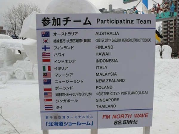 ทั้งนี้ ในการประกวดแกะสลักหิมะครั้งที่ 42 ที่เมืองซัปโปโร มีผู้เข้าแข่งขันทั้งสิ้น 12 ทีม ทั้งจากออสเตรเลีย เกาหลีใต้ ฟินแลนด์ ฮาวาย อินโดนีเซีย อิตาลี มาเลเซีย นิวซีแลนด์ โปแลนด์ เมืองพอร์ทแลนด์ สหรัฐอเมริกา สิงคโปร์ และไทย โดยที่ไทย สามารถคว้ารางวัลชนะเลิศมาครองได้เป็นผลสำเร็จ และอันดับ 2 คือ ทีมฟินแลนด์ อันดับ 3 คือ เกาหลีใต้ อันดับ 4 โปแลนด์ และอันดับ 5 อิตาลี