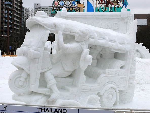 ทีมไทยสร้างชื่อ ชนะเลิศการแข่งขันแกะสลักหิมะที่ซัปโปโร โดยแกะเป็นรูปรถตุ๊ก ๆ สื่อถึงความเป็นไทย