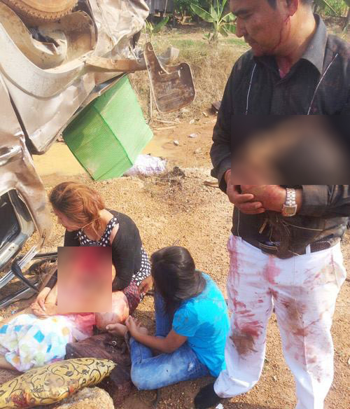 โดยหนึ่งในผู้เสียชีวิตเป็นเด็กหญิงอายุ 8 ปี สภาพศพคอขาดออกจากร่างกาย โดยมีผู้เป็นแม่นั่งกอดร่างไร้วิญญาณของลูกสาว ขณะที่พ่ออุ้มศีรษะของลูกสาวไว้ ส่วนผู้เสียชีวิตอีกรายเป็นชายวัย 56 ปี