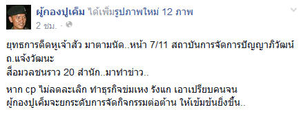 ร.อ. ทรงกลด ชื่นชูผล โพสต์เฟซบุ๊ก เปิดศึกซีพี งัดยุทธการดีดหูเจ้าสัว รวมตัวคึกหน้าร้านเซเว่น อีเลฟเว่น สาขาปัญญาภิวัฒน์ ขู่หากไม่เลิกรังแกคนจน จะยกระดับต่อต้าน