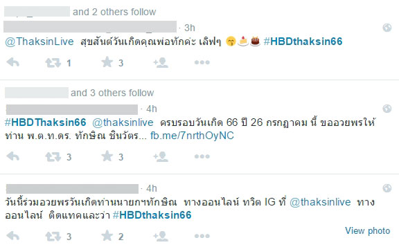 ทั้งนี้ มีรายงานว่า บรรดาผู้ใช้งานอินเทอร์เน็ตต่างทยอยติดแฮชแท็ก #HBDthaksin66 เพื่อร่วมอวยพรวันเกิด พ.ต.ท. ทักษิณ เนื่องในวันครบรอบวันคล้ายวันเกิด 66 ปี