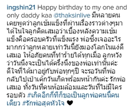 ล่าสุด น.ส.แพทองธาร ชินวัตร บุตรสาวของ พ.ต.ท. ทักษิณ ได้โพสต์ภาพของ พ.ต.ท. ทักษิณ ผ่านอินสตาแกรมส่วนตัว ingshin21 ขณะอยู่ที่นครดูไบ ประเทศสหรัฐอาหรับเอมิเรตส์ กำลังทานไอศกรีม พร้อมระบุข้อความว่า "Happy birthday to my one and only daddy kaa @thaksinlive" ตนภูมิใจที่ได้เกิดเป็นลูกของพ่อ พร้อมรอวันกลับมาเป่าเค้กพร้อมหน้าพร้อมตากันทั้งครอบครัวอีกครั้ง