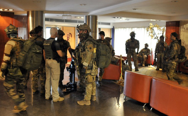 ขณะเดียวกัน เวลาประมาณ 20.00 น. ตามเวลาประเทศไทย เจ้าหน้าที่หน่วยพิเศษได้เข้าจู่โจมโรงแรมดังกล่าวแล้ว ส่งผลให้ตัวประกัน 80 ชีวิตถูกปล่อยตัวออกมา