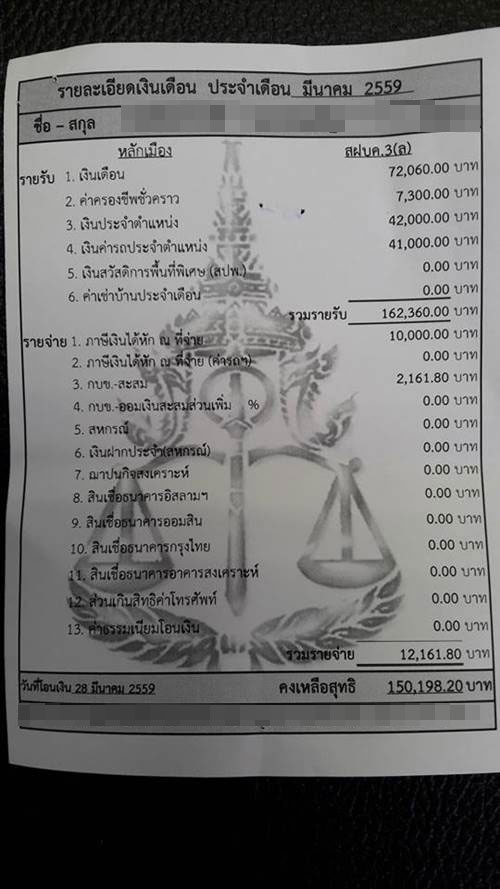 วันที่ 30 มีนาคม 2559 อัยการท่านหนึ่ง ซึ่งทำงานที่สำนักงานอัยการสูงสุด ได้โพสต์ภาพสลิปเงินเดือนในตำแหน่งของตนเองลงเฟซบุ๊กส่วนตัว โดยมีรายได้สุทธิ 150,198.20 บาท