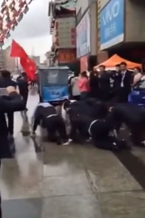 พนักงานขายวัยหนุ่มสาวยอมคุกเข่าลงคลานสี่ขาไปตามถนนสาธารณะ เหตุทำยอดขายได้ไม่ถึงเป้า หัวหน้าอ้างไม่ได้สั่ง ลูกน้องสมัครใจทำเองทั้งนั้น