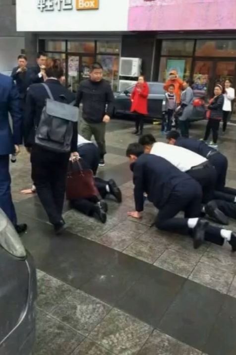 มีคลิปวิดีโอตกเป็นกระแสวิพากษ์วิจารณ์หนักในหมู่ชาวเน็ตแดนมังกรอีกแล้ว หลังปรากฏเป็นภาพของพนักงานซึ่งล้วนยังอยู่ในวัยหนุ่มสาวร่วม 10 คน ลงคลานสี่ขาไปกับพื้นถนน ซึ่งเว็บไซต์เซี่ยงไฮ้อิสต์ เปิดเผยในรายงานวันที่ 8 เมษายน 2559 ว่า ที่เห็นนี้เป็นพนักงานขายของบริษัทสินเชื่อรถยนต์แห่งหนึ่งในเมืองจี๋หลิน โดยเหตุการณ์เกิดขึ้นเมื่อช่วงบ่ายของวันที่ 2 เมษายนที่ผ่านมา