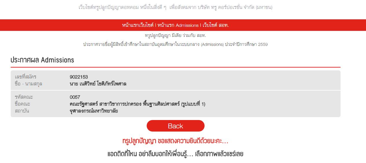 วันนี้ (6 มิถุนายน 2559) ผู้สื่อข่าวรายงานว่า หลังจากที่มีการประกาศผลแอดมิชชั่นประจำปี 2559 บรรยากาศก็ปนเปกันทั้งความสุข ความเศร้า เคล้ารวมกันไป เมื่อมีผู้สมหวังก็ย่อมมีผู้ผิดหวังเป็นธรรมดา
