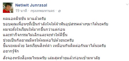 โดยข้อความในเฟซบุ๊กส่วนตัวของ นายเนติวิทย์ มีรายละเอียดดังนี้