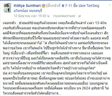 เมื่อวันที่ 15 มิถุนายน 2559 เฟซบุ๊ก Kittiya Sunthari ได้มีการแชร์คลิปเหตุการณ์ชายเสื้อลายสกอต กำลังโต้เถียงกับตำรวจทางหลวงและชายอีกคนหนึ่ง พร้อมกับมีข้อความว่า เหตุการณ์นี้เกิดขึ้นเมื่อวันที่ 11 มิถุนายนที่ผ่านมา พ่อเจ้าของคลิปได้ขับรถแซงรถคันดังกล่าวเนื่องจากขับช้าและอยู่เลนขวา ต่อมารถคันนี้ก็ได้ขับแซงปาดหน้ากลับ เลื่อนกระจกลงด่าทอหยาบคาย ทางรถเจ้าของคลิปก็ขอโทษ แต่ทางคู่กรณีไม่ยอม จึงควักปืนขู่ ดังนั้นจึงได้ขับรถเข้าปั๊มน้ำมันและเคลียร์กับตำรวจทางหลวง ซึ่งทางตำรวจก็บอกว่า "ผมรู้ว่าเขาเป็นลูกใคร" ก่อนจะไม่ดำเนินคดีอะไร