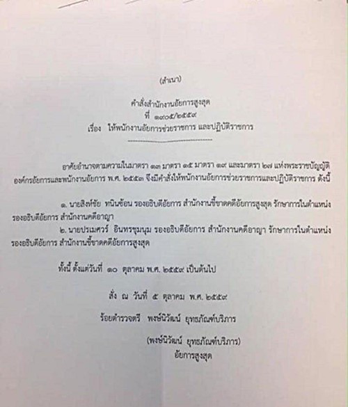 เปิดเอกสารเด้ง ปรเมศวร์ อินทรชุมนุม รองอธิบดีอัยการ หลังโพสต์วิจารณ์ พล.อ. ประยุทธ์ พร้อมให้ สิงห์ชัย ทนินซ้อน รักษาการตำแหน่งแทน