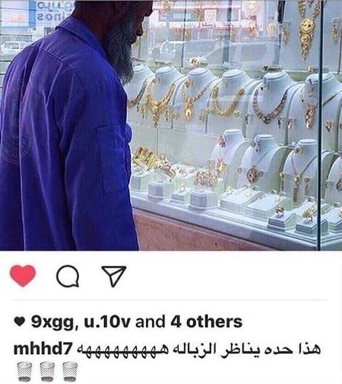 โดย คุณตานัสเซอร์ อัล อิสลาม อับดุล คาริม เป็นชายชราชาวบังกลาเทศ ที่จากบ้านเกิดเมืองนอนมาทำงานเป็นคนทำความสะอาดอยู่ในประเทศซาอุดีอาระเบีย ในวันนั้นเขาแค่เดินผ่านร้านเครื่องประดับและหยุดดูเฉย ๆ เขาไม่ได้รับรู้เลยว่าถูกแอบถ่ายและเอาไปดูถูกเหยียดหยามในโลกโซเชียล