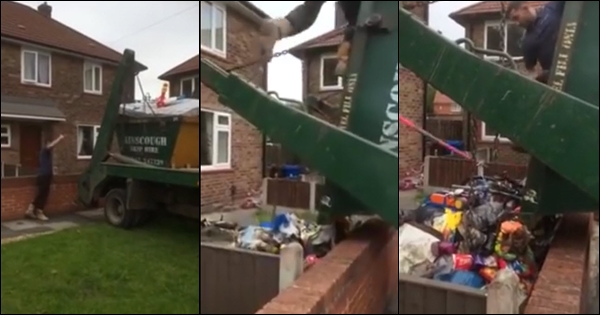 วันที่ 12 ธันวาคม 2559 เว็บไซต์เดลี่เมล เปิดเผยคลิปวิดีโอพร้อมรายงานว่า รถขยะคันหนึ่งในประเทศอังกฤษ ตัดสินใจเทสิ่งของต่าง ๆ ลงบนสวนของบ้านลูกค้า หลังพวกเขาถูกเบี้ยวจ่ายเงินค่าบริการ โดยเหตุการณ์เกิดขึ้นหลังมีหญิงรายหนึ่ง ใช้บริการทีมเก็บขยะ เอนสกัฟ ซึ่งอยู่แถววีแกน ใกล้กับเมืองแมนเชสเตอร์ แต่หลังจากนั้น เธอกลับไม่ยอมจ่ายค่าบริการ ทำให้บริษัทดังกล่าวตัดสินใจแก้เผ็ดด้วยการเอาขยะมาเททิ้งคืนไว้ที่สวนของบ้านเธอ