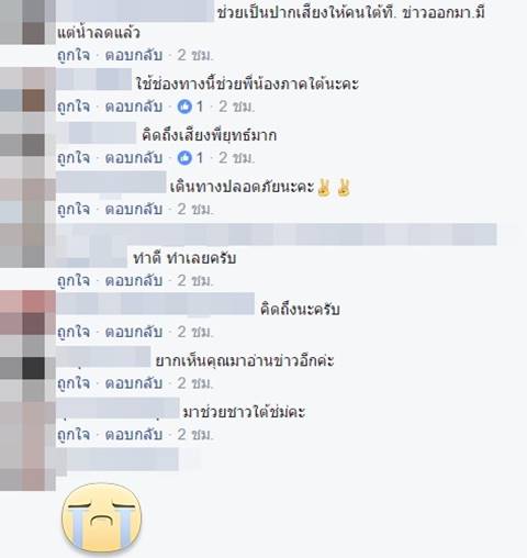 ซึ่งขณะที่เจ้าตัวกำลังไลฟ์อยู่นั้น ได้มีแฟนข่าวเข้ามาคอมเมนต์บอกว่าคิดถึง และบอกว่าพระเอกลุยภาคใต้แล้ว คงช่วยหลายคนที่กำลังเดือดร้อนจากน้ำท่วมได้บ้าง อยากให้กลับมาอ่านข่าวไว ๆ