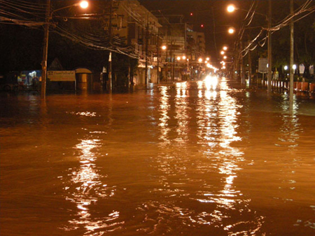 น้ำท่วมหาดใหญ่ ช่องเขา ถนนศุภสารรังสรรค์ ถ่ายจากสี่แยก เครดิต : momiji1987