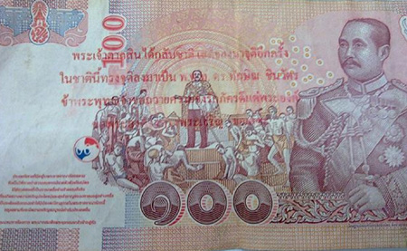 กำลังเป็นประเด็นร้อนอยู่ในขณะนี้ สำหรับกรณีที่มีการหมุนเวียนของธนบัตรพิมพ์ข้อความสีแดงที่ด้านหลังธนบัตรอย่างไม่เหมาะสม กระจายไปในท้องตลาดโดยเฉพาะในพื้นที่ภาคเหนือและอีสาน โดยธนบัตรนี้ได้ระบุข้อความว่า "พระเจ้าตากสิน ได้กลับชาติเสด็จลงมาจุติอีกครั้ง ในชาตินี้จุติลงมาเป็น พ.ต.ท.ทักษิณ ชินวัตร ข้าพระพุทธเจ้าขอถวายความจงรักภักดีแด่พระองค์ ขอพระองค์ทรงพระเจริญ" ทำให้มีคนส่งฟอร์เวิร์ดเมล์เตือนห้างร้านให้ระวังการรับธนบัตรเหล่านี้กันอย่างแพร่หลาย