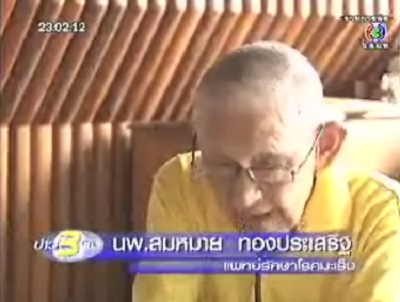 นายแพทย์สมหมาย ทองประเสริฐ วัย 89 ปี ชาว จ.สิงห์บุรี ที่เปิดคลินิกรักษาโรคมะเร็ง อยู่ที่บ้านเกิด ซึ่งในแต่ละวันมีชาวบ้านแห่กันมาให้ นายแพทย์สมหมาย ทองประเสริฐ ตรวจรักษา เกือบ 100 ราย ทำให้ชื่อของ นายแพทย์สมหมาย ทองประเสริฐ กลายเป็นที่รู้จักกันอย่างแพร่หลาย และผู้ป่วยโรคมะเร็งต่างเรียก นายแพทย์สมหมาย ทองประเสริฐ ว่า“หมอเทวดา”