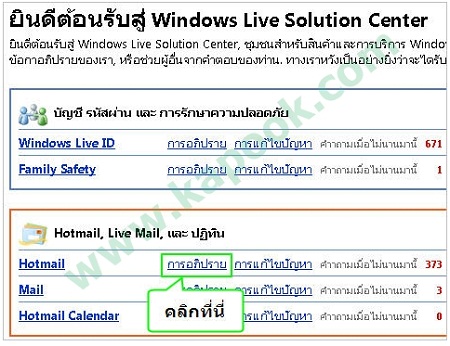 แนวทางที่ 1 โพสต์แจ้งไว้ใน Windows Live Solution Center