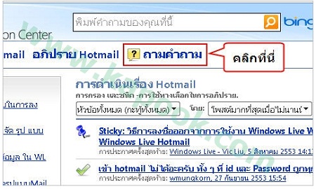 2. เมื่อได้อีเมล์ hotmail ใหม่มาแล้วก็ให้เข้าไปที่ http://www.windowslivehelp.com/ ดังรูป
