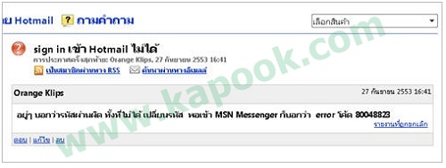 ถึงตอนนี้เชื่อว่าผู้ใช้ฮอตเมล์กำลังมีปัญหาเดียวร่วมกันนั่นก็คือ เข้า Hotmail ไม่ได้ เพราะรหัสผ่านผิด ทั้งที่ก็ใส่ถูกต้องแล้ว แม้ในเวลานี้ผู้ให้บริการฮอตเมล์จะยังไม่ได้ออกมาชี้แจงถึงปัญหาดังกล่าว สำหรับผู้ใช้งาน Hotmail พันธุ์แท้อย่างเรา ๆ แล้ว ก็สามารถที่จะช่วยกันแจ้งข้อมูลปัญหาดังกล่าวไปยังผู้ดูแลระบบบริการฮอตเมล์ได้อีกด้วย