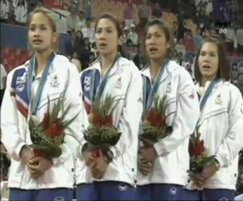 ส่วนตะกร้อทีมหญิงไทย เอาชนะสาวญวนไป 2-1 เซต 21-15, 14-21, 15-11 คว้าเหรียญทองมาสำเร็จ นับเป็นเหรียญทองที่ 9 ทำให้ไทยขยับขึ้นมาอยู่อันดับที่ 6 ของตารางแล้ว