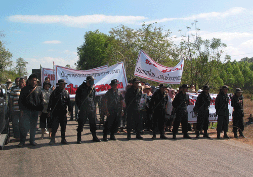 ด้านชาวบ้าน ต.โนนหมากมุ่น เมื่อทราบว่า มีขบวนเดินทางมาถึงจุดดังกล่าว ก็ได้นำรถบรรทุกอ้อยและรถบรรทุกดินออกมาเตรียมสกัดกั้น ซึ่งห่างจากบริเวณจุดของขบวนเพียงแค่ 1 กิโลเมตร โดยไม่ต้องการให้ขบวนเดินทางรุกล้ำเข้าไป