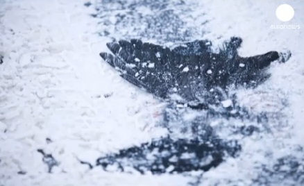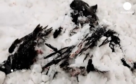 นกตายเกลื่อนบนถนนที่ปกคลุมด้วยหิมะ ในสวีเดน
