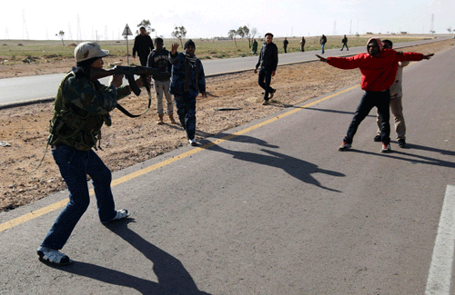 กองกำลังทหารกัดดาฟี เข้าสกัดกั้นแรงงานข้ามชาติ กว่า 30,000 คน ที่กำลังอพยพออกจากประเทศ พร้อมต้อนกลับเข้ากรุงตริโปลี เพื่อใช้แรงงาน