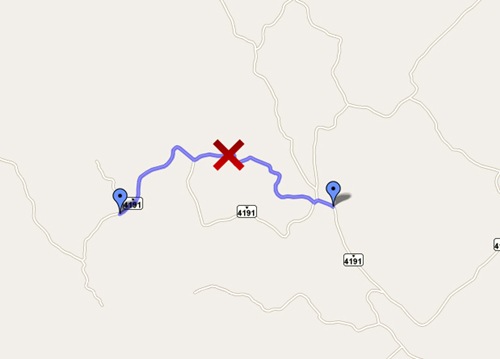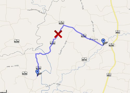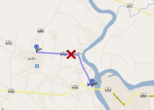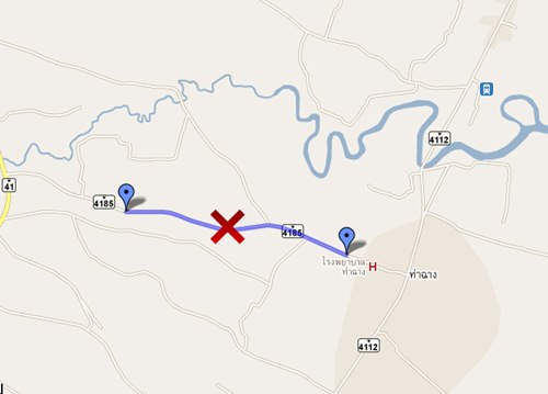 สาย 4186 โรงเหล็ก-กรุงชิง ท้องที่อำเภอนบพิตำ คอสะพานชำรุด ที่ กม. 1-700 ไม่มีสายทดแทน