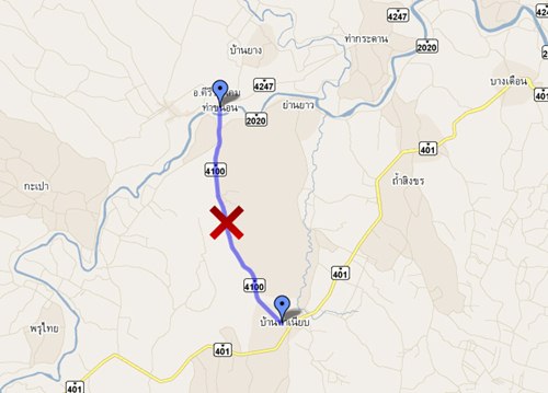 ซม. ที่ กม. 22-25 เป็นแห่งๆ ใช้สาย 401 บ้านตาขุน-พุนพิน แทน