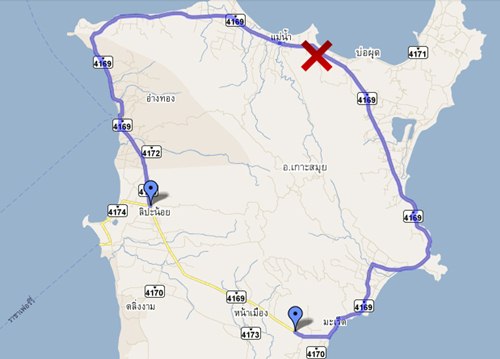 สาย 4169 รอบเกาะสมุย ท้องที่อำเภอเกาะสมุย น้ำท่วมสูง 120 เซนติเมตร ที่ กม. 20-21 ใช้ทางเทศบาล แทน