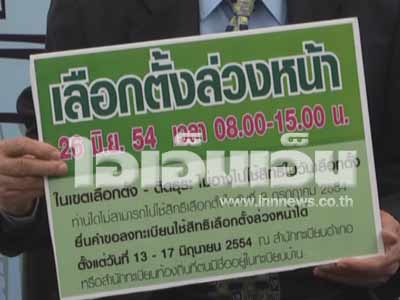 วันเลือกตั้งล่วงหน้า : วันที่ 26 มิถุนายน 2554 เวลา 08.00-15.00 น.