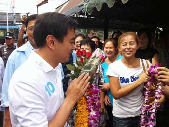 อภิสิทธิ์ หาเสียงสมุทรสาครเจอแดงป่วน (ไอเอ็นเอ็น)