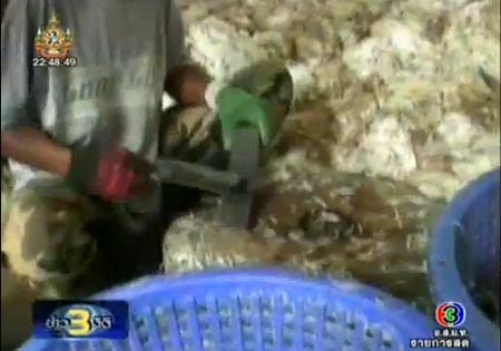 เผยโรงชำแหละเถื่อนที่โคราช ซื้อไก่เน่าตัวละ 3 บาท ก่อนนำมาชำแหละ-ชุบฟอร์มาลีนขายส่งแม่ค้า และแปรรูปเป็น กุนเชียง ไก่หยอง ราคาถูก!!! ล่าสุดสั่งปิดแล้ว 4 โรงงาน