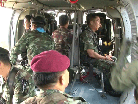 พลเอกประยุทธ์ จันทร์โอชา ผู้บัญชาการทหารบก กล่าวถึงกรณีเฮลิคอปเตอร์แบล็กฮอว์ก ตกเป็นลำที่ 2 ว่า ยังมีหวัง อย่าเพิ่งหมดกำลังใจ โดยตนก็สวดมนต์ขอพรทุกวัน ทั้งนี้ กองทัพก็ติดตามสถานการณ์มาโดยตลอด และแม่ทัพภาคที่ 1 ก็รายงานอย่างต่อเนื่อง ซึ่งขณะนี้เท่าที่ได้รับรายงาน ก็ยังไม่พบตัวเครื่องเฮลิคอปเตอร์ แบล็กฮอว์ก และลูกเรือทั้ง 9 คนแต่อย่างใด โดยเจ้าหน้าที่ ยังคงลาดตระเวนและเดินเท้าไปในฝั่งพม่า ส่วนในฝั่งไทยก็มีเจ้าหน้าที่ถึง 15 ชุด เตรียมสนาม ฮ. ไว้