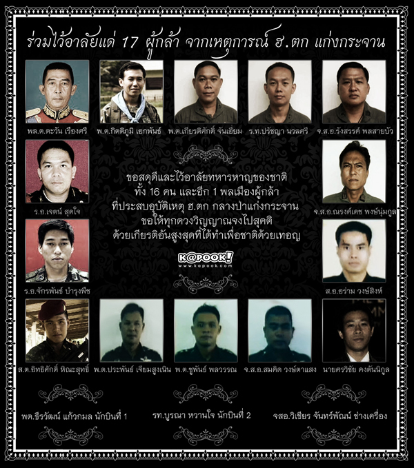 จากกรณีที่เฮลิคอปเตอร์แบล็กฮอว์กขาดการติดต่อในเขตอุทยานแก่งกระจาน เมื่อวานนี้ (19 กรกฎาคม) ซึ่งก่อนหน้านี้เฮลิคอปเตอร์ดังกล่าวกำลังออกบินในช่วงเช้า เพื่อไปลำเลียงศพทหารที่เสียชีวิตจากเหตุเฮลิคอปเตอร์ตกเมื่อวันที่ 16 กรกฎาคมที่ผ่านมา