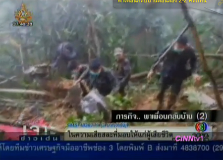พี่ชัยวัฒน์เองก็เป็นหนึ่งในที มเดินเท้าเข้าไปกู้ภัยในป่า ในฐานะทีมสนับสนุน โดยขนเสบียงอาหาร เวชภัณฑ์ เปลต่าง ๆ เข้าไปในป่าด้วย เพื่อหวังจะใช้ช่วยชีวิตผู้ ประสบเหตุ แต่ทว่า หลังจากใช้เวลาเดินทางหลายวั นเข้าไปถึงจุดเกิดเหตุ พี่ชัยวัฒน์ กลับได้รับรายงานอันน่าสลดว่า ทหารทั้้ง 5 นายเสียชีวิตแล้วทั้งหมด เขาจึงต้องนั่งเฮลิคอปเตอร์กลั บมาที่ฐาน เพื่อเปลี่ยนแผนใหม่เป็นการเตรี ยมอุปกรณ์นำร่างผู้เสียชีวิตกลั บบ้านแทน