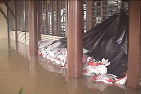 แนวกั้นน้ำหมู่ที่ 4 ตำบลบางเคียน ที่ชาวบ้านทำกั้นไว้ได้พังทลายจนน้ำทะลักเข้าท่วมบ้านเรือนและที่นา ชาวบ้านจึงช่วยกันนำเศษฟางและกระสอบทรายไปอุดเพื่อซ่อมแซมเบื้องต้น ขณะที่ชาวบ้านบางส่วนประชดผู้ว่าฯ ให้ความช่วยเหลือน้ำท่วมล่าช้า เขียนป้ายประกาศขายที่นาทั้งตำบลไร่ละ 150,000 บาท