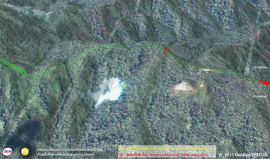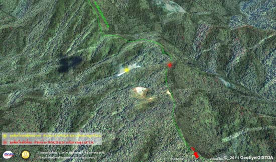 (หมายเหตุ : ภาพดังกล่าวเป็นภาพที่ถูกถ่ายจากดาวเทียว IKONOS ที่ถูกบันทึกไว้เมื่อปี 2552 ซึ่งเจ้าหน้าที่่ได้นำมาใช้เพื่อชี้จุดบริเวณ ฮ.ตก)