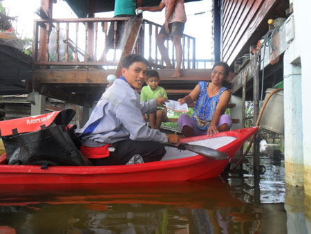 นอกจากนี้ ปณท ยังได้นำเงินบริจาคของประชาชนที่ได้บริจาคผ่านเคาน์เตอร์ไปรษณีย์ไปจัดทำถุงยังชีพเพื่อส่งไปช่วยเหลือผู้เดือดร้อน พร้อมจัดรถไปรษณีย์ขนาดใหญ่ส่งสิ่งของช่วยเหลือผู้ประสบภัยในพื้นที่ดังกล่าวด้วยสามารถตรวจสอบรายชื่อที่ทำการไปรษณีย์และพื้นที่ที่ประสบอุทกภัยได้ที่ http://www.thailandpost.co.th/ และสอบถามได้ที่ Call center โทร. 1545