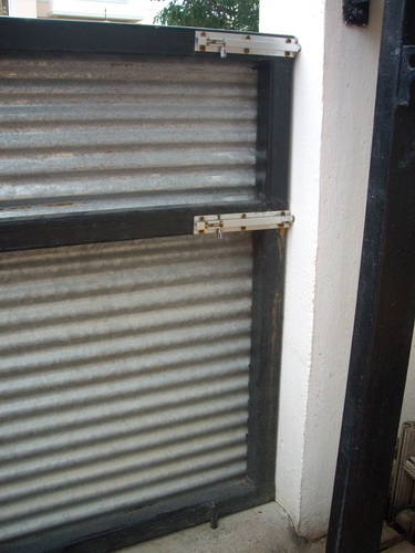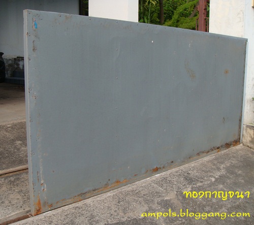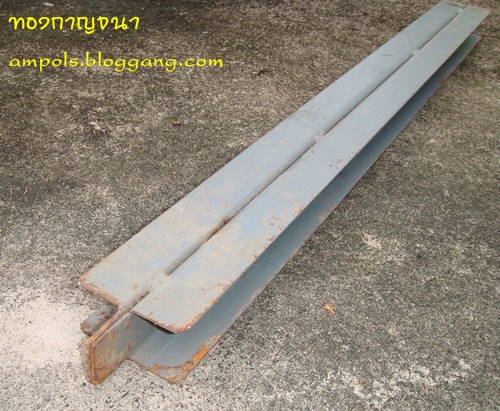 - เสากลางเป็นรางเหล็กที่มีขนาดความกว้างเท่ากับที่ติดตั้งไว้ที่ประตูรั้ว นำด้านหลังมาเชื่อมให้ติดกัน และที่โคนเสาทำบากตามภาพ เพื่อให้เสียบลงไปบนรางเหล็กในภาพที่ 3 ได้