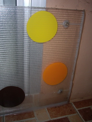 ติดกาว 2 หน้าแบบบาง 3 ด้าน ด้านล่างและด้านข้าง 2 ด้านที่แผ่นเหล็ก (สำหรับแผ่นที่ต้องต่อกัน 2 ชั้น ติดโฟมยางด้านบนด้วย) ตัดโฟมยางเป็นเส้นตามขอบ ติดแนบลงไป