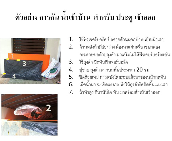 สิ่งที่ต้องทำในเวลานี้สำหรับผู้คนในพื้นที่เสี่ยงภัย นอกจากการเตรียมอาหาร และเก็บข้าวของเตรียมพร้อมอพยพทุกเมื่อแล้ว หากยังพอมีเวลาเราสามารถป้องกันน้ำท่วมบ้านได้ ซึ่งวันนี้เรามีวิธีป้องกันไม่ให้น้ำท่วมบ้านอย่างได้ผลจาก คุณ ทองกาญจนา ผู้ที่เคยผ่านประสบการณ์น้ำท่วมบ้านในจังหวัดเชียงใหม่