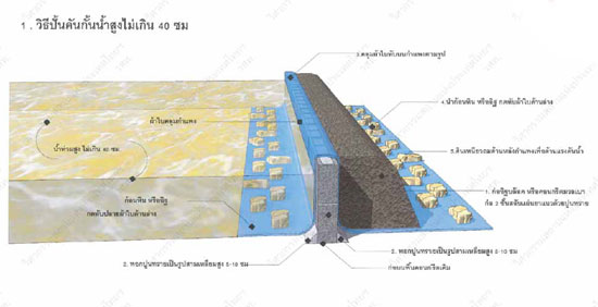 แม้ว่าทุกภาคส่วน ทุกหน่วยงานจะช่วยกันเฝ้าระวังอย่างเต็มกำลัง แต่สถานการณ์น้ำท่วมในขณะนี้ไม่อาจคาดเดาได้ง่ายนัก ข่าวคันกั้นน้ำพัง พนังกั้นน้ำแตก มีรายงานต่อเนื่องรายวัน ดังนั้นแล้ว การเตรียมรับมือดูจะเป็นหนทางที่ดีที่สุดในพื้นที่เสี่ยงภัยที่น้ำยังมาไม่ถึง