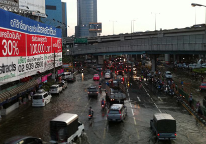 ส่วนที่ถนนพหลโยธินระดับน้ำเริ่มลดลงเหลือเพียง 70 เซนติเมตร และน้ำจากคลองบางซื่อที่เอ่อเข้าท่วมตลาด อ.ต.ก.ก็เริ่มแห้งลงแล้ว แต่บริเวณห้าแยกลาดพร้าว รถเล็กยังไม่สามารถสัญจรผ่านได้