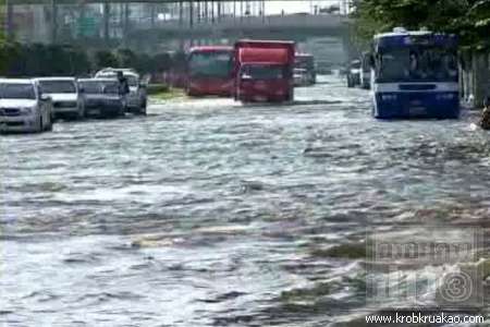 32.ถนนสุขาภิบาล 5 ปิดการจราจรตลอดสาย ระดับน้ำ 60 ซม.